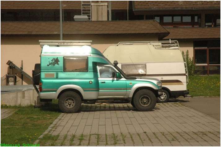 In Oberndorf bin ich vor der Abfahrt mit meinem Stellplatznachbarn ins Gespräch gekommen. Der hatte einen grünen Toyota Geländewagen mit einer winzigen, aber schön integrierten Wohnkabine hintendrauf. Damit war er bis Island und bis Marokko, immer mit seiner Frau, manchmal auch mit seinem Sohn.