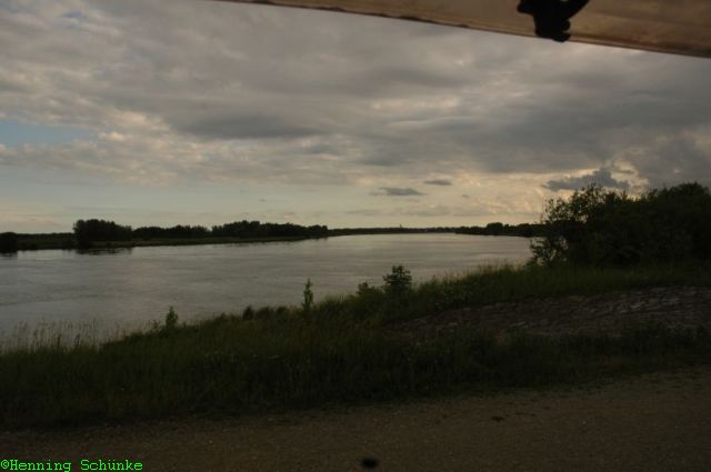 Nach dem Essen (Makkaroni mit Sauce Bolognese) bin ich weiter gefahren, immer an der Donau entlang. An einem Altarm konnte ich das Auto abstellen und bin etwas auf dem Deich hin- und hergeradelt. Der Weg war in Ordnung, aber alle Radfahrer waren hinterm Deich unterwegs. Keine Ahnung warum, von oben konnte man viel mehr sehen.
