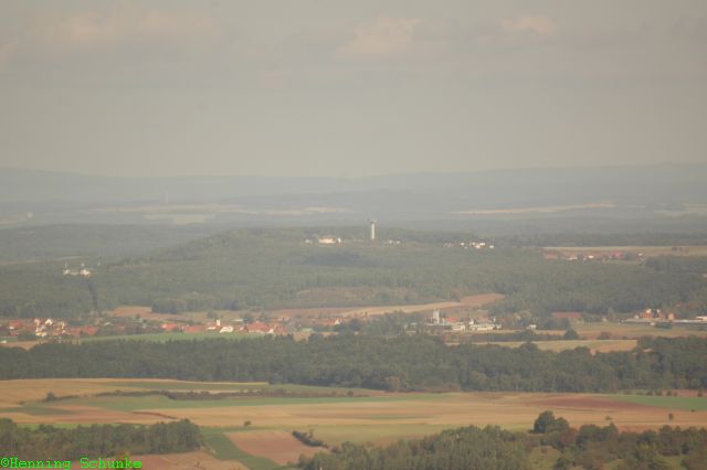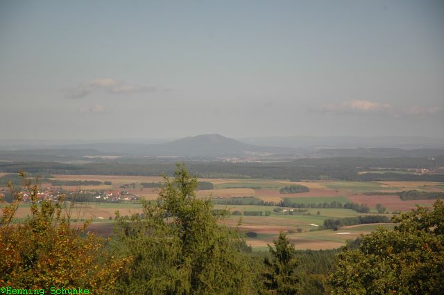 Hier kann man im Norden bis Thüringen sehen, unter anderem den Gleichberg: