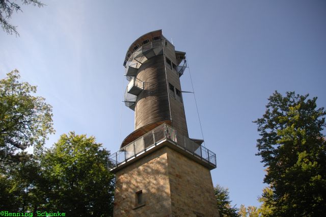 Bedingt durch hohe Bäume ringsum liegt der Platz fast den ganzen Tag im Schatten. Ich steige noch auf den 1924 erbauten und 2001 sanierten Aussichtsturm.