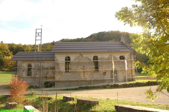 In der Nähe von Wellheim entdecke ich die „Ruinenkirche Maria im Spindeltal“ mit einer sehr wechselhaften Geschichte. Gebaut 1478, wurde sie während der Reformation zerstört, im 18. Jahrhundert wieder aufgebaut und weil sich die Diözesen Augsburg und Eichstatt nicht über die Einnahmen aus der Wallfahrt einigen konnten, ließ man sie wieder verfallen. Im heutigen Zustand wurde sie in den sechziger Jahren konserviert und wird seit den achtziger Jahren des letzten Jahrhunderts wieder als Wallfahrtskirche genutzt. Diesmal sammelt aber ein Förderverein die Einnahmen ein und erhält damit die Kirche.