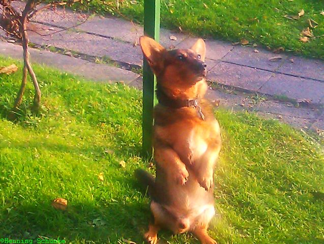 Nebenbei bespaße ich Bernds superniedlichen Hund Percy mit einem Ball, dem er immer mal wieder hinterher rennt, aber manchmal eben auch nicht.