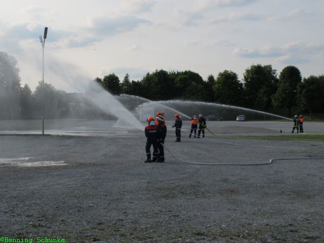nein, kein Volksfest oder „Dult“, wie es hier heißt. Dann müsste ich ja verschwinden. Aber heute abend kam die Feuerwehr vorbei zum Üben. Erst wurden alle instruiert…