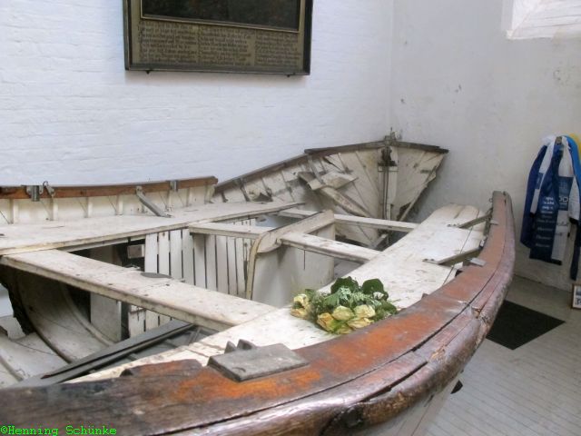 In einer Seitenkapelle liegt das Rettungsboot Nummer 2 der Viermastbark Pamir, die 1957 mit 86 Mann an Bord im Atlantik gesunken ist. Nur sechs Männer überlebten das Unglück. Einer davon trieb 72 Stunden in diesem Rettungsboot über den Ozean.