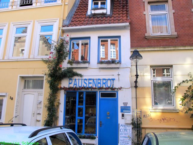 Gegenüber der Jakobikirche befindet sich die Schiffergesellschaft, eines der ältesten Gasthäuser der Stadt. Hier kann man auf Bänken aus Schiffsplanken in sehr uriger Atmosphäre gut essen.