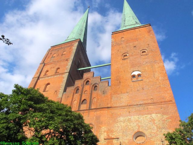 Ein Dom ist ja bekanntlich die Bischoffskirche und sollte das größte Gotteshaus der Stadt sein. Aber in Lübeck hatte der Bischoff die Rechnung ohne die Bürger und Kaufleute gemacht. Die waren reich und mächtig genug, um sich mit der Marienkirche ein viel größeres Bauwerk hinzustellen, als es sich der Bischoff je leisten konnte.
