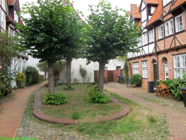 Neben den Wohngängen gibt es auch Stiftshöfe, wie den Füchtingshof. Hier haben reiche Kaufleute Wohnungen für arme Wittwen gestiftet.