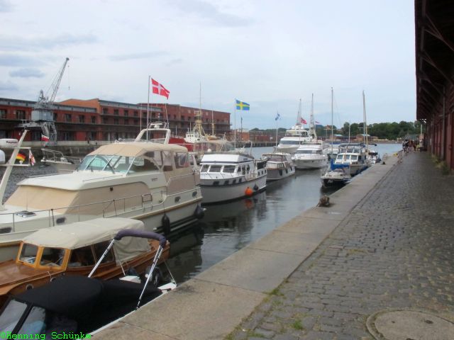 Ein Stück weiter, hinter der Drehbrücke, beginnt der Oldtimerhafen. Hier liegen alte Schiffe, meist in Privatbesitz, die man aber gut vom Ufer aus ansehen kann.