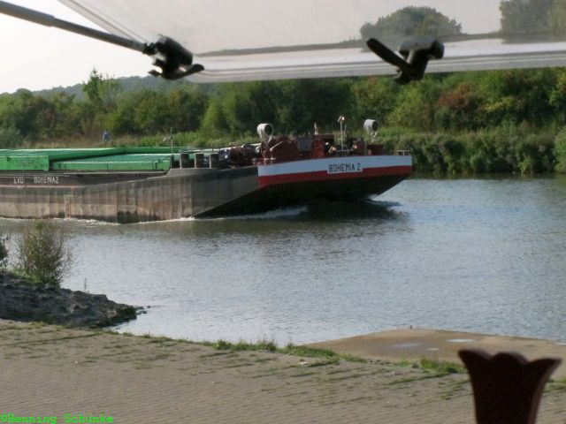 Natürlich kommen eine Menge Schiffe vorbei, darunter dieser endlose Schubverband aus Tschechien. Der Anfang…