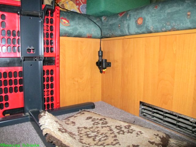 Dann war Olli noch so nett, mir eine Steckdose in der Sofaecke einzubauen. Da kann ich jetzt mein Netbook anschließen, ohne mein Kabel über das halbe Sofa ziehen zu müssen.