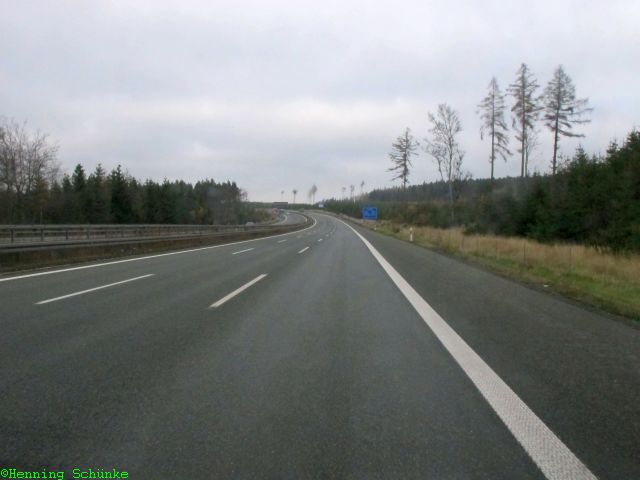 Ich war mit etwa 85 km/h unterwegs, da brauchte ich kaum einmal eines der Pedale zu benutzen, dank Tempomat. Nur den wenigen LKW-Fahrern war das etwas zu langsam. Dieser hier war nur ein paar Zentimeter pro Stunde schneller als ich.