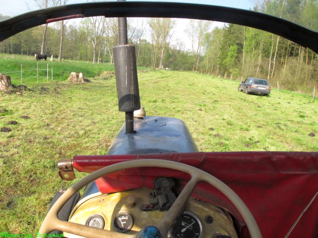 Mit diesem Trecker und einem Anhänger haben wir Feuerholz geholt.