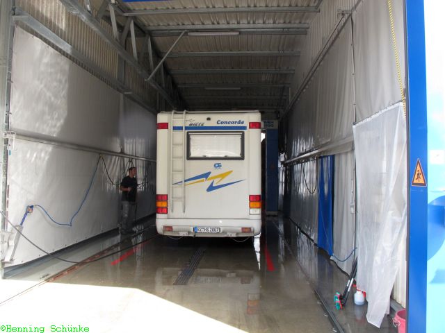 An den Plätzen zum Selbstwaschen habe ich immer recht vergeblich auf den Regenstreifen und dem festsitzenden Dreck herumgeschrubbt. Hier hat man ganz andere Möglichkeiten.