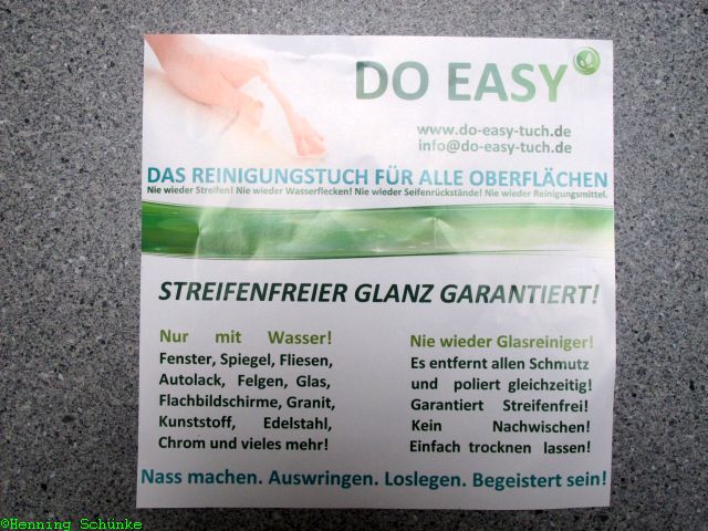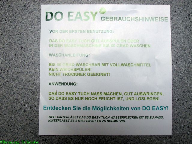 Hinweis: Das DO-EASY-Tuch gab es geschenkt, mit der Bitte, doch mal einen Testbericht dazu zu schreiben. Vorgaben für das Testergebnis gab es dabei nicht.