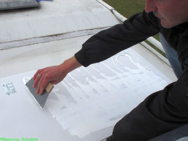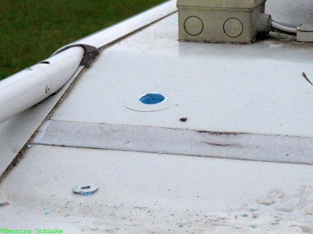 Das alles war auf dem Dach verschraubt. Andre hat die Löcher zum Teil mit den neuen Modulen abgedeckt oder die alten Schrauben, versehen mit Dekaline als Dichtmasse, wieder hineingedreht.