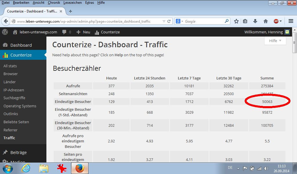 der 50.000ste eindeutige Besucher dieser Webseite seit der Installation des Counterize-Zählers Mitte Dezember 2013:
