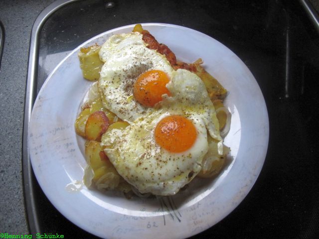 Statt der Spiegeleier schmeckt auch Sauerfleisch sehr gut.