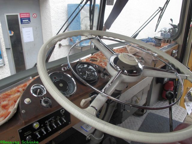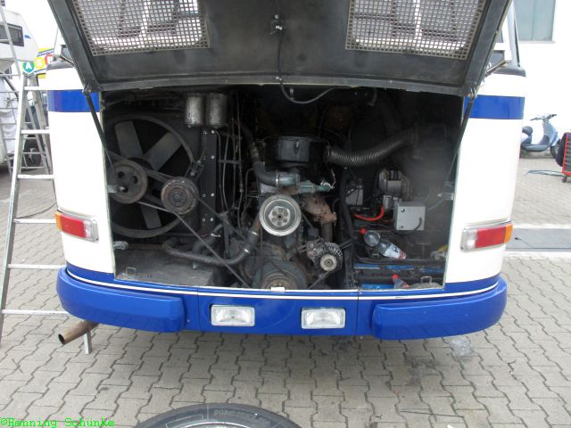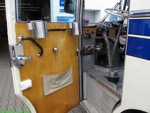 Nebenan stand der Red-Bull-Tourbus, der ja hier bei R&R seine Basis hat. Dessen Türen, obwohl schon Baujahr 1969, sind makellos und standen sogar offen, denn der Bus wurde hingebungsvoll gewienert.