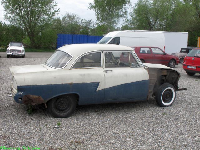 …wird durch einen Ford Taunus mit Weißbandreifen verteten.