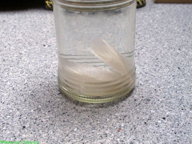 Es löst sich also auf, aber wie geht das vor sich? Jetzt wollte ich es wissen, hier die Versuchsanordnung: