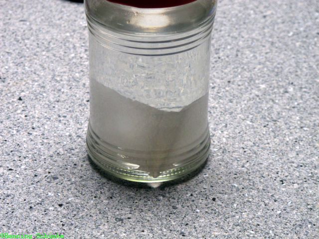Am 11. Mai, nach immerhin vier Tagen, befürchtete ich schon, ich müsste doch zu dem teuren Spezialpapier raten. Dann habe ich das Glas einmal beherzt geschüttelt.