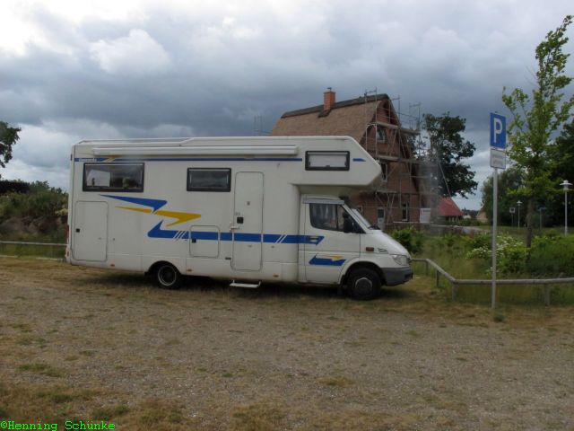Bei der weiteren Runde durch den Ort ist mir auch aufgefallen, dass das Café Strandgut wohl nichts mehr mit dem Stellplatz zu tun haben will. Die Entsorgung dort gibt es nicht mehr und auf dem Firmenschild des Cafés ist der Hinweis auf den Wohnmobilstellplatz durchgestrichen. Nach der Infotafel am Platz ist die Übernachtung mit dem Wohnmobil dort aber weiterhin möglich.