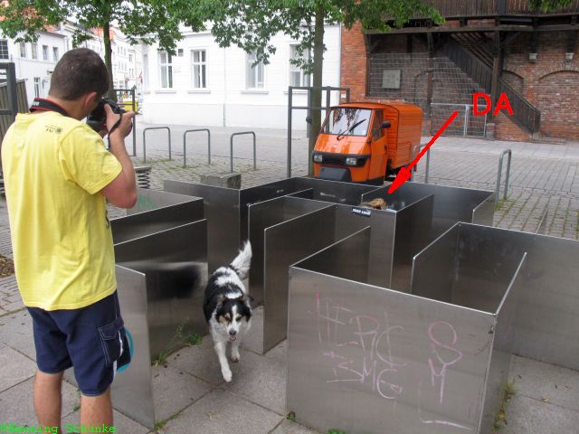 An der Obertrave finden wir einen tollen Hundespielplatz. Jedes Kind, das laufen kann, ist auch groß genug, um dieses Labyrint zu überblicken. Aber Stella hatte ihre liebe Not, Frauchen wiederzufinden.