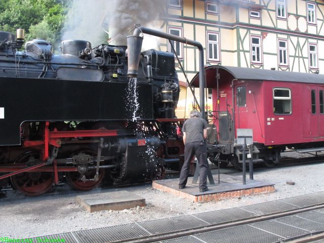 In Eisfelder Talmühle, nach rund zwei Stunden Fahrt, sind wir ausgestiegen. Die Dampflok bekam frisches Wasser…
