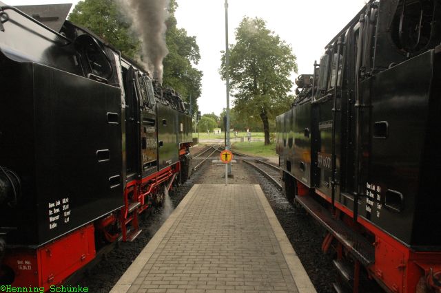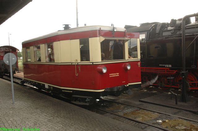 Ab Donnerstag stand auch wieder die 99 6001 auf der Strecke zur Verfügung. Diese Lok wurde 1939 als Prototyp einer geplanten Einheitslokomotive für Schmalspurbahnen bei Krupp in Essen gebaut. Die Produktion weiterer Maschinen verhinderte jedoch der Zweite Weltkrieg.