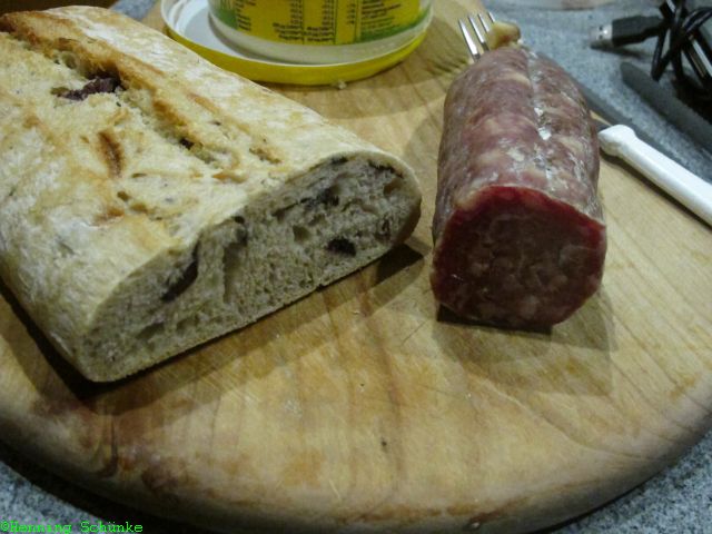 Beim Abendessen ergeben das Ciabattabrot von Lidl und die exklusive Salami aus Brescello…