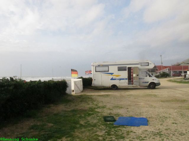 Das Meer ist gerade einmal 25 Meter entfernt und das Rauschen der Brandung ist unüberhörbar. Die Zufahrt war offen, aber wieder niemand zu sehen, darum weiß ich noch nichts über Preise.