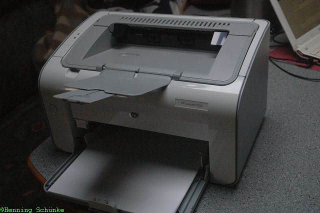 HP LaserJet P1102 *. Der passt mit seinen Abmessungen von 350mm x 230mm x 195mm (B x T x H) noch gerade so in das Staufach über der Sitzgruppe…