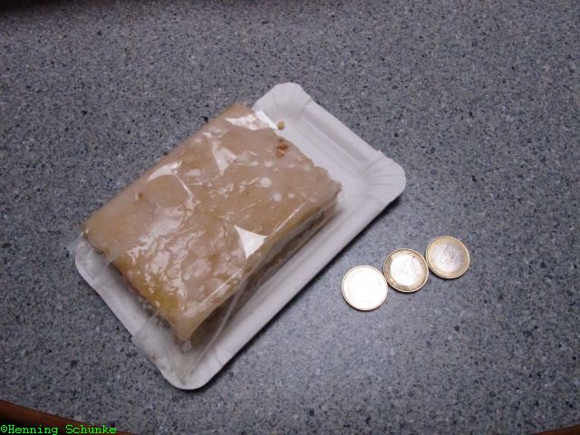 Wenn ich dort ein Konto hätte, wäre das wohl kostenlos gewesen, so aber nicht. Da hab ich mir gedacht, wenn es schon was kosten soll, geh ich eben Kuchen kaufen, dann hab ich was von der „Gebühr“.