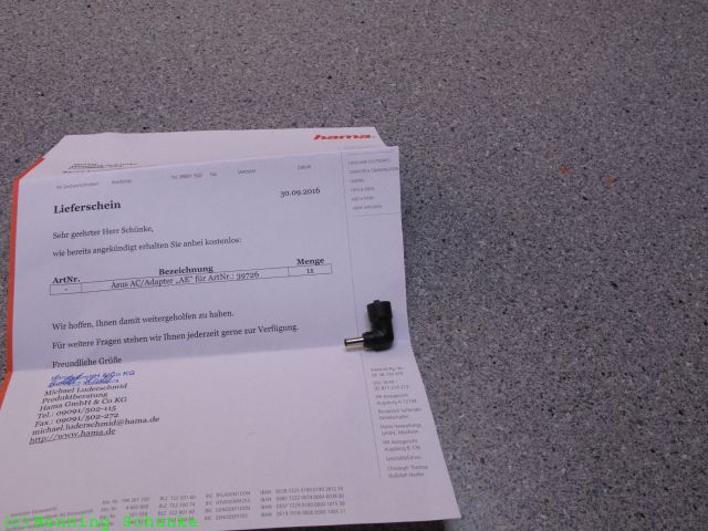 Letztes Hindernis war noch der fehlende Adapter für das Hama-Netzteil.