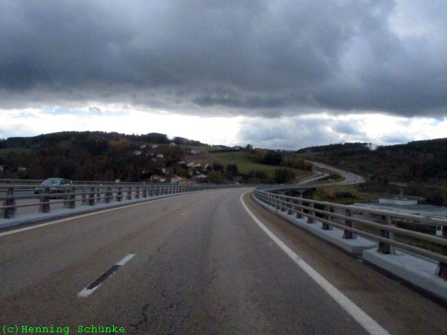 …und so geht es zügig mit rund 70 bis 80km/h über Berg und Tal. Erst kurz vor dem Ziel in der Nähe von Le-Puy-en-Velay wird die Straße schmaler, aber immer noch gut befahrbar.