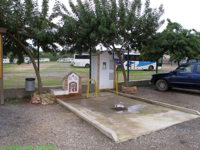 …liegt etwas abseits auf einem kleinen Parkplatz. Für große Mobile, die über den Bodeneinlass rangieren müssen, ist es hier zu eng, aber eine Lücke im Zaun erlaubt die schnelle Klo-Entsogung zwischendurch.