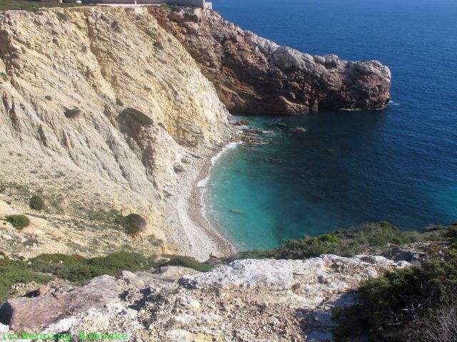 Das ist von meinem momentanen Wohnort nicht wirklich weit und ein kleiner Spaziergang kann ja nicht schaden bei der dauernden Faulenzerei in der Sonne. Ich versuche es zunächst abseits der Straße, aber da gibt es keinen wirklich bequemen Weg. So gehe ich dann doch zur Straße, von der aus kann ich aber immer wieder ein paar Abstecher machen. Obwohl es auf der Straße sicher noch keine tausend Meter sind, passen doch diese zwei Buchten dazwischen: