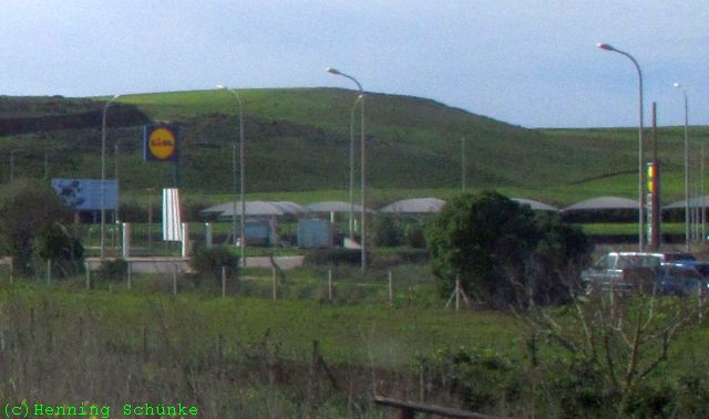 Aber nicht irgendeine Lidl-Filiale, das ist immerhin die südwestlichste Lidl-Filiale des europäischen Kontinents in Villa do Bispo. An der bin ich aber tapfer vorbei gefahren, ich wollte zur südwestlichsten Intermarché-Filiale in Sagres. Mein Klo verlangte nach Entleerung und die Schmutzwäsche nach Waschung und beides wird hier geboten. Eine Euro-Relais-Entsorgungsstation (die südwestlichste V+E Europas immerhin) neben der Tankstelle und an der Hauswand des Supermarkts…