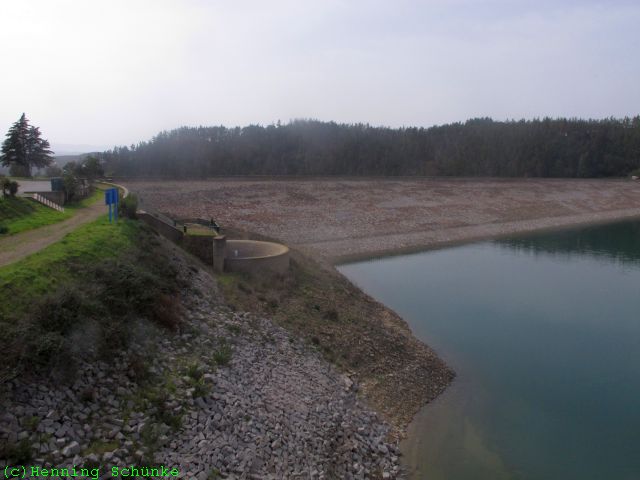 Am Nachmittag gehe ich den Nachbarn mit dem schwarzen Hund besuchen. Dabei ergibt sich diese Aussicht auf die Staumauer…
