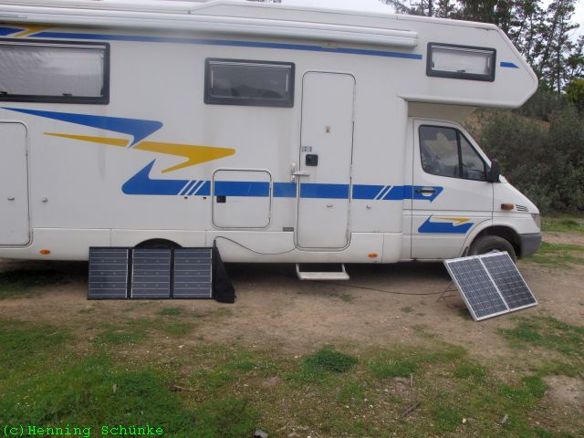 Am nächsten Tag kommt Andre vorbei. Der steht mit Tanja und Brenzel ganz in der Nähe. In Lagos habe ich eines seiner Faltmodule verbilligt als Rückläufer kaufen können.