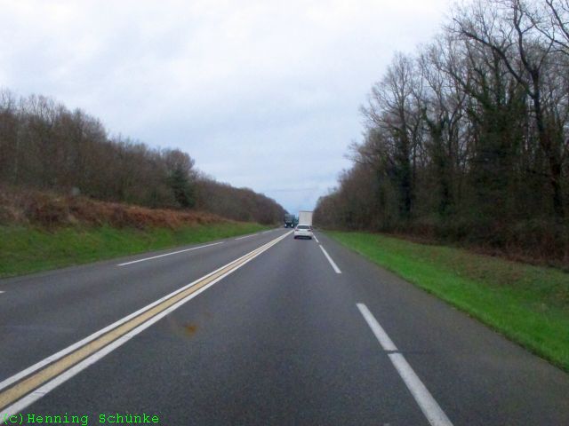 Als der Bus direkt neben meinem Kopf am Morgen wieder angelassen wurde, war ich dann auch wach, aber es sollte ja sowieso weitergehen. Einkaufen und dann fast 360 Kilometer Richtung Osten fahren. Bis jetzt war ich vorwiegend nördlich mit leichtem Drall nach Osten vorangekommen. Die Karte versprach für diese Etappe aber viele vierspurig ausgebauten Abschnitte. Doch zunächst Einkaufen. Der Lidl von Bellac war allerdings eine Entäuschung. Dort gab es weder Kaffeebohnen für meine Mühle, noch Frischmilch für meinen Frühstückskakao. Aber immerhin das leckere Ciabattabrot. Das Fehlende habe ich nebenan beim Carrefour besorgt und dann ging es los. Zuerst einspurig pro Richtung…
