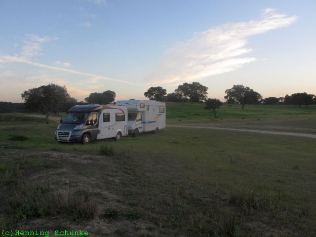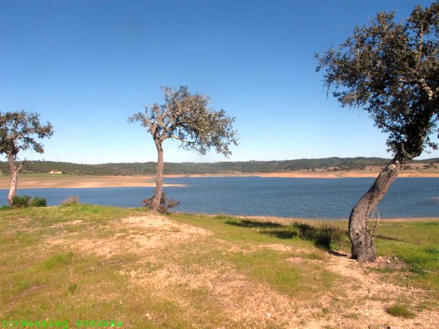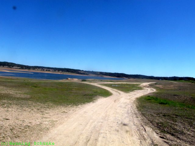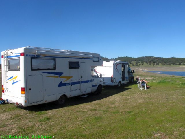 Der See bietet jede Menge Freistehplätze. Erlaubt ist davon offiziell nichts, darum gibt es auch keine Koordinaten. Solange sich alle benehmen, beschränkt sich die GNR aufs Streife fahren. Am Wochenende kommen auch die Einheimischen hierher zum Picknick machen, aber die verteilen sich in dem weitläufigen Gelände.