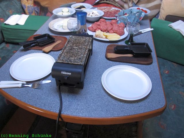 Das ist Schnee, also dieses nasse, weiße Zeug, das nur vom Himmel fällt, wenn es richtig kalt ist. Und so war es auch, nasskalt und ungemütlich. Ich war noch Einkaufen und bin dann zurück zum Freistaat bei Sulzemoos gezuckelt. Dort wartete schon netter Besuch. Mit Laura war ich zum Raclette-Essen verabredet.