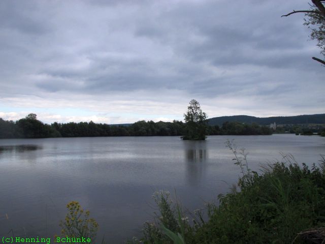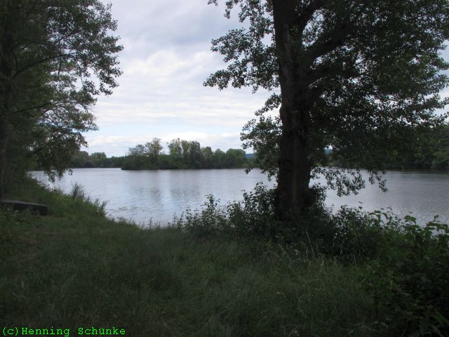 Die Karte zeigt in der Umgebung jede Menge Seen und Altarme des Flusses, die Mainaue bei Augsfeld. Einen Rundweg gibt es auch, den habe ich aber erst gefunden, nachdem ich jedem Weg bis zum Ende gefolgt bin und dabei so manchen gut versteckten Angler aufgestöbert habe.