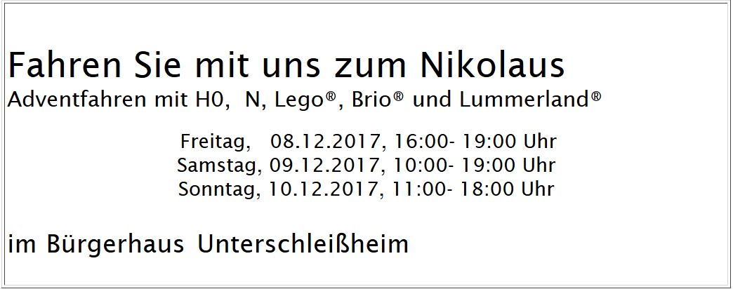 Dem Nikolaus fahren wir eher hinterher, der war ja schon am 6.12. Nur will an einem Mttwoch niemand zur Modellbahnausstellung kommen.