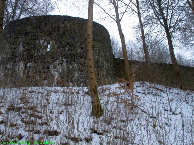 Am nächsten Tag war der Schnee tatsächlich liegen geblieben, also die Wanderstiefel geschnürt und los. Weit war der Weg nicht, aber ziemlich steil. Von der Burg Parkstein sind seit der Mitte des 18. Jahrhunderts nur noch ein paar Grundmauern zu sehen.