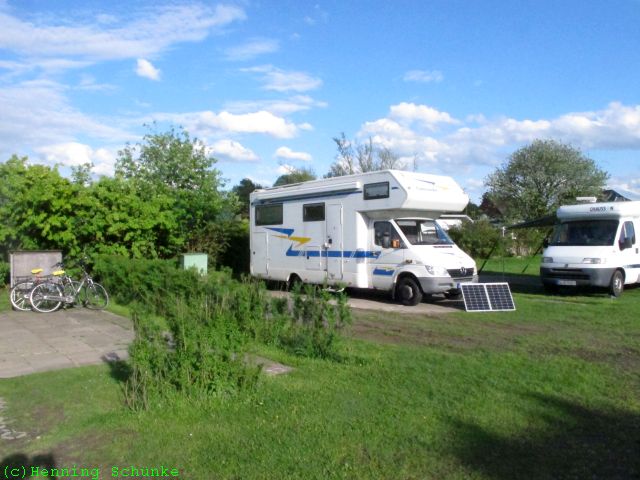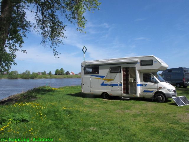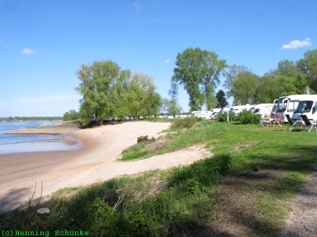 Bemerkungen: Teilweise Schatten. Sanitäranlagen und Strom auf dem Stellplatz von November bis Februar wegen Überflutungsgefahr abgebaut, der Campingplatz ist aber ganzjährig geöffnet. Einzelreisende zahlen auf dem Stellplatz die Gebühr für ein Wohnmobil und eine Person, die auch auf dem Campingplatz gilt, das ist dann einen Euro billiger, als die offiziell ausgeschrieben 14€ für zwei Personen.