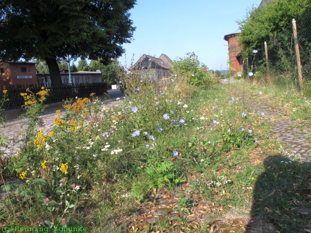 Trotz Trockenheit, denn auch im Harz hat es seit April nicht mehr geregnet, blüht es am Bahnhof Gernrode.