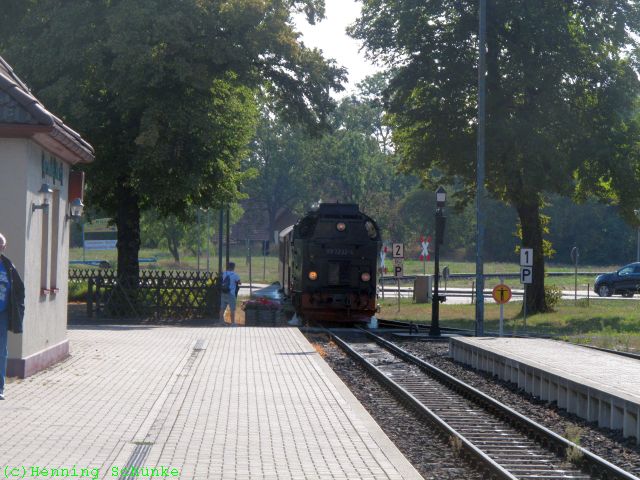 Die meisten Dampfzüge fahren dennoch, so wie dieser, der hier gerade aus Alexisbad kommend in Gernrode einläuft.