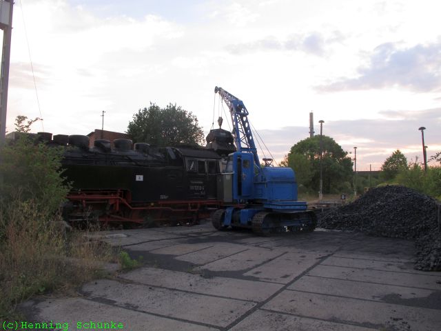Im Bahnhof Gernrode bekommt die Lok frische Kohle…